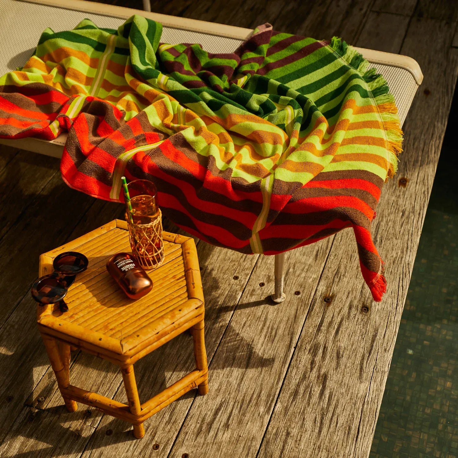 The Chiara Bath Sheet in Zest by Sage x Clare is made for sun-soaked days and effortless everyday use. With a plush, absorbent terry front and a smooth, lightweight back, it dries quickly, packs easily and delivers comfort without the bulk. Finished with fringed edges for a relaxed, bohemian feel.
