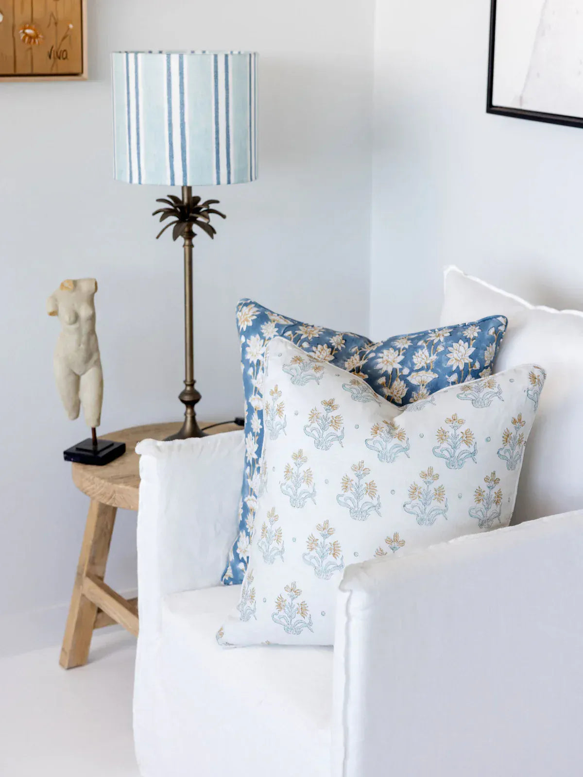 The Imperial Bloom Cushion in Zephyr by Humble Living is a beautifully crafted statement piece celebrating the art of traditional block printing. Designed in Australia by Viva Designs and hand printed in Rajasthan, India, this cushion is made from 100% organic linen and brings depth, pattern and a soulful, artisanal feel to your space.