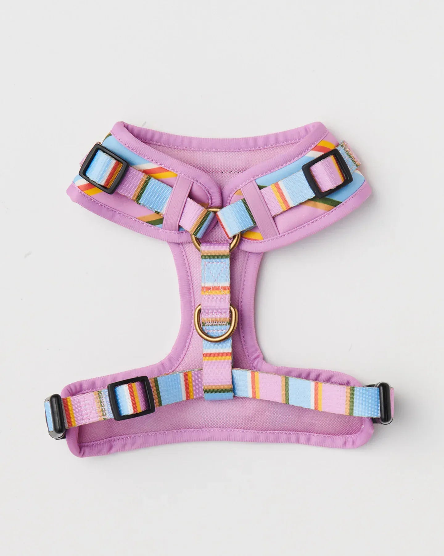 The Fez Stripe Dog Harness by Kip & Co brings colourful charm and everyday comfort to your pup’s walks. Made from durable recycled polyester with adjustable straps and secure quick-release buckles, it’s designed for a safe, comfortable fit — and the vibrant Fez Stripe print ensures your furry friend steps out in style.