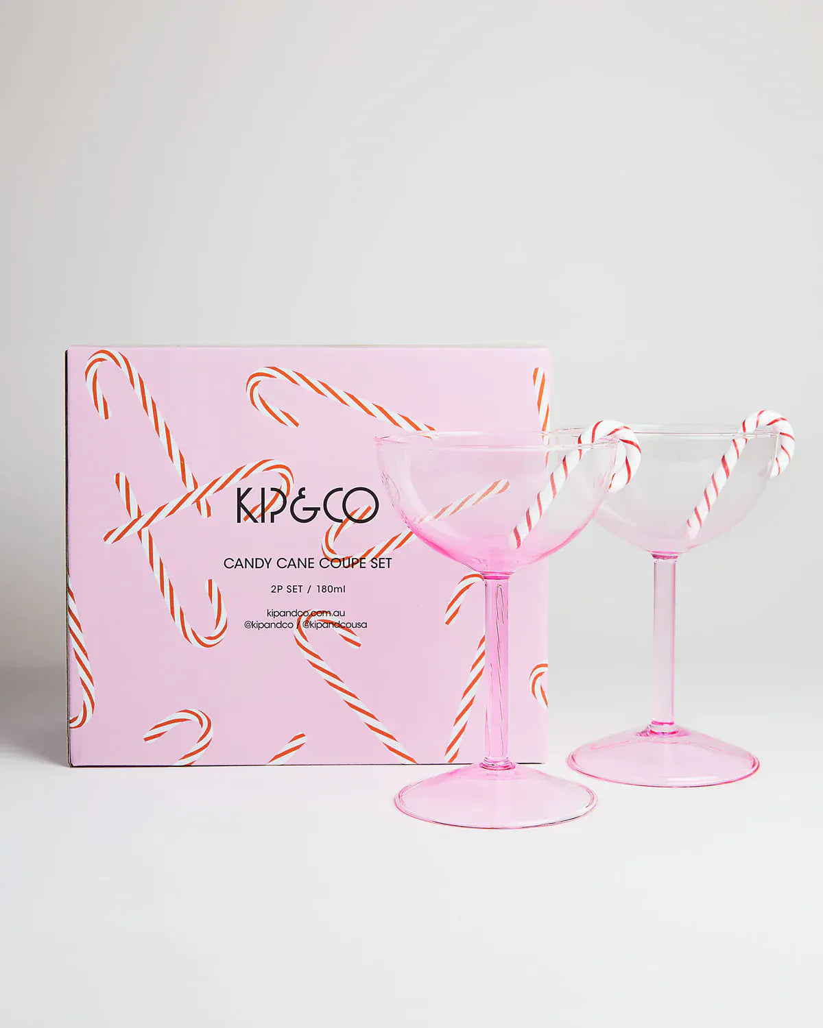 The Candy Cane Coupe Glass Set by Kip & Co brings festive sparkle to every celebration. Handblown from pale pink tinted glass, each coupe features playful red and white candy cane striping for a joyful Christmas twist. Perfect for cocktails, champagne or festive desserts, these special-edition glasses are made for merry moments and seasonal entertaining.