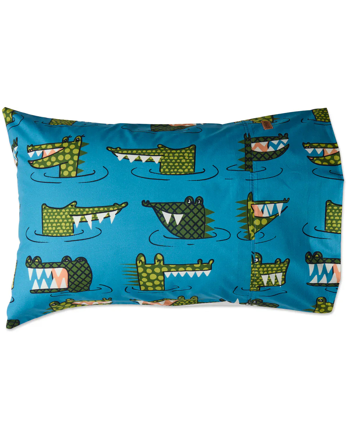 Crocodile Rock Blue Organic Cotton Pillowcase | Single