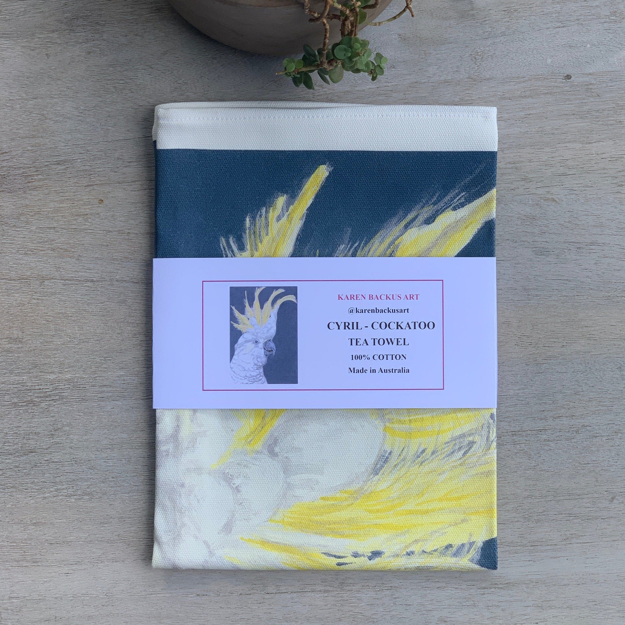 This gorgeous tea towel features Karen's paintings/drawings on them.