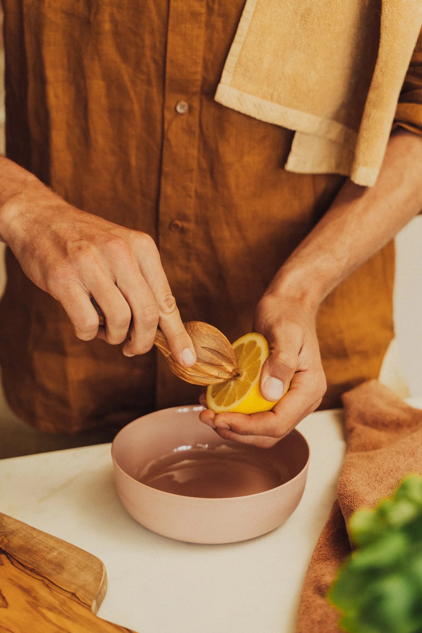 Bring natural beauty to your kitchen with the Olive Wood Lemon Reamer by Saarde. Handcrafted from durable olive wood, each piece features unique grain patterns, making it both a functional tool and a timeless addition to your kitchen.